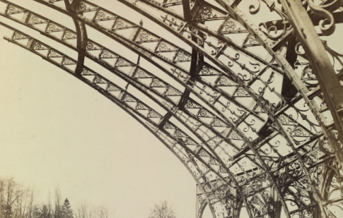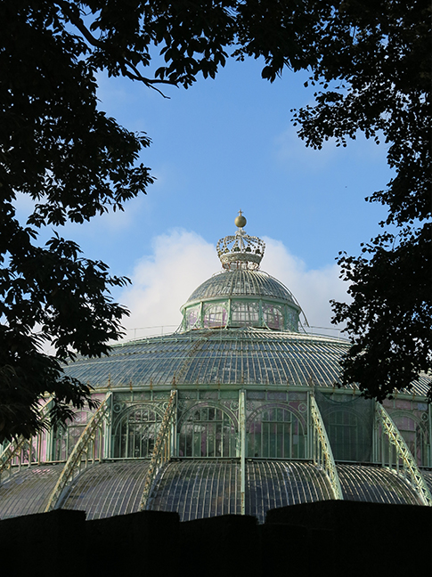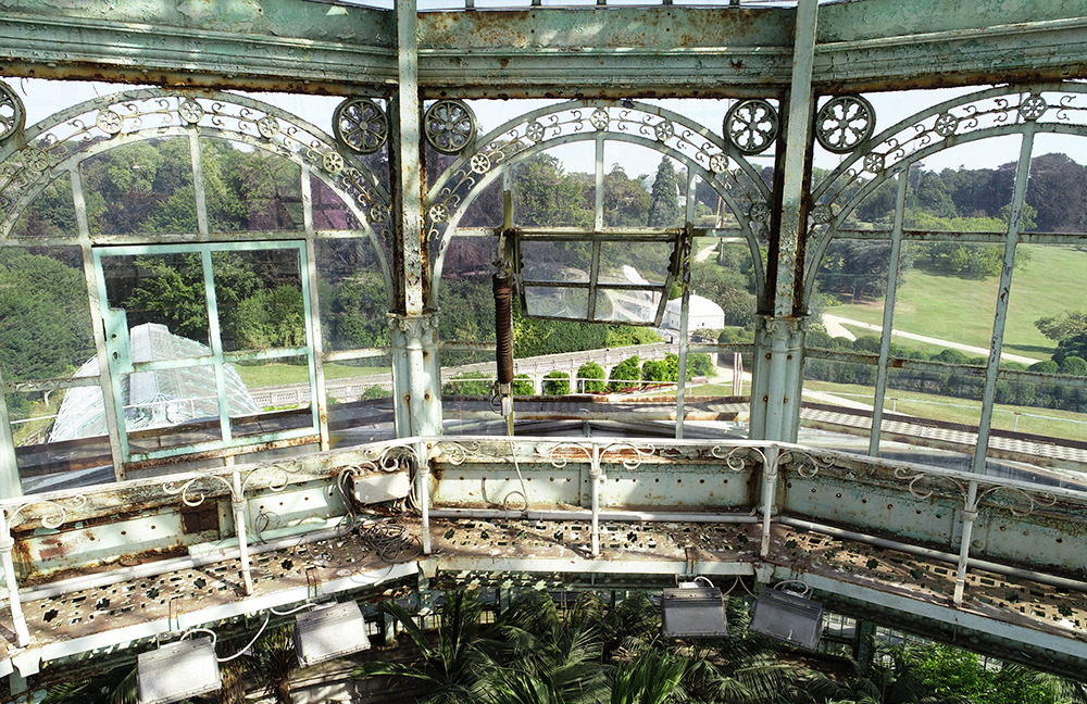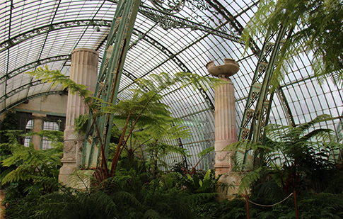 Au sommet de cette composition s’élève une couronne royale, ajoutée en cours de projet. Loin d’être un simple ornement, elle implique des adaptations structurelles, l’introduction de nouveaux matériaux, notamment le cuivre, et un renforcement local de l’ossature. Elle affirme sans ambiguïté le statut de l’édifice. Le Jardin d’hiver n’est pas une serre expérimentale ou publique, mais un bâtiment de représentation, un signe de souveraineté posé au-dessus d’un monde végétal venu d’ailleurs. Ici, la structure, la technique et la symbolique sont indissociables.